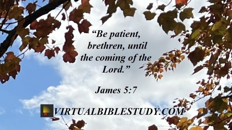 7 Therefore be patient, brethren, until the coming of the Lord. The farmer waits for the precious produce of the soil, being patient about it, until it gets the early and late rains.8 You too be patient; strengthen your hearts, for the coming of the Lord is near.9 Do not complain, brethren, against one another, so that you yourselves may not be judged; behold, the Judge is standing right at the door.10 As an example, brethren, of suffering and patience, take the prophets who spoke in the name of the Lord.11 We count those blessed who endured. You have heard of the endurance of Job and have seen the outcome of the Lord’s dealings, that the Lord is full of compassion and is merciful.