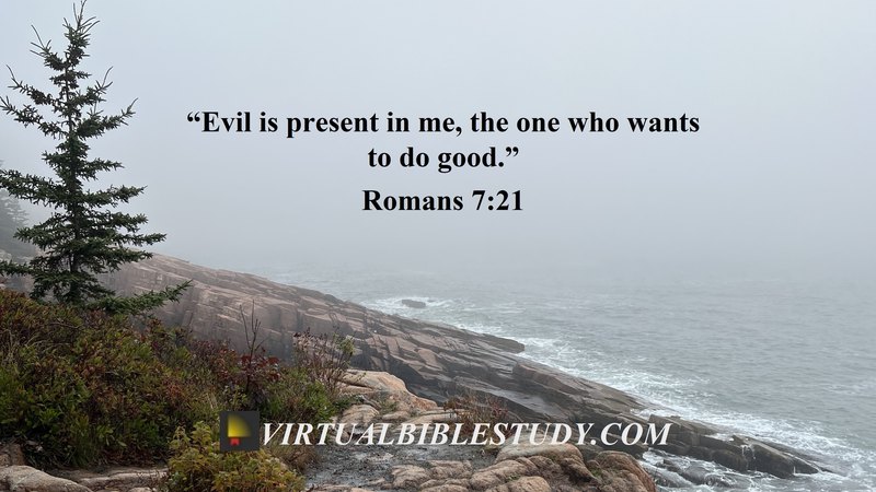 - “For the good that I want, I do not do, but I practice the very evil that I do not want. But if I am doing the very thing I do not want, I am no longer the one doing it, but sin which dwells in me.” – Romans 7:19-20.