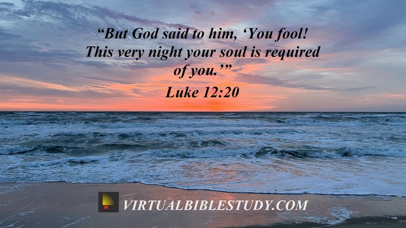 13 Someone in the crowd said to Him, “Teacher, tell my brother to divide the family inheritance with me.” 14 But He said to him, “Man, who appointed Me a judge or arbitrator over you?” 15 Then He said to them, “Beware, and be on your guard against every form of greed; for not even when one has an abundance does his life consist of his possessions.” 16 And He told them a parable, saying, “The land of a rich man was very productive. 17 And he began reasoning to himself, saying, ‘What shall I do, since I have no place to store my crops?’ 18 Then he said, ‘This is what I will do: I will tear down my barns and build larger ones, and there I will store all my grain and my goods. 19 And I will say to my soul, “Soul, you have many goods laid up for many years to come; take your ease, eat, drink and be merry.”’ 20 But God said to him, ‘You fool! This very night your soul is required of you; and now who will own what you have prepared?’ 21 So is the man who stores up treasure for himself, and is not rich toward God.”
