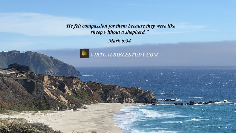 32 They went away in the boat to a secluded place by themselves. 33 The people saw them going, and many recognized them and ran there together on foot from all the cities, and got there ahead of them.34 When Jesus went ashore, He saw a large crowd, and He felt compassion for them because they were like sheep without a shepherd; and He began to teach them many things. 35 When it was already quite late, His disciples came to Him and said, “This place is desolate and it is already quite late; 36 send them away so that they may go into the surrounding countryside and villages and buy themselves something to eat.” 37 But He answered them, “You give them something to eat!” And they said to Him, “Shall we go and spend two hundred denarii on bread and give them something to eat?” 38 And He said to them, “How many loaves do you have? Go look!” And when they found out, they said, “Five, and two fish.” 39 And He commanded them all to sit down by groups on the green grass. 40 They sat down in groups of hundreds and of fifties. 41 And He took the five loaves and the two fish, and looking up toward heaven, He blessed the food and broke the loaves and He kept giving them to the disciples to set before them; and He divided up the two fish among them all. 42 They all ate and were satisfied, 43 and they picked up twelve full baskets of the broken pieces, and also of the fish. 44 There were five thousand men who ate the loaves.