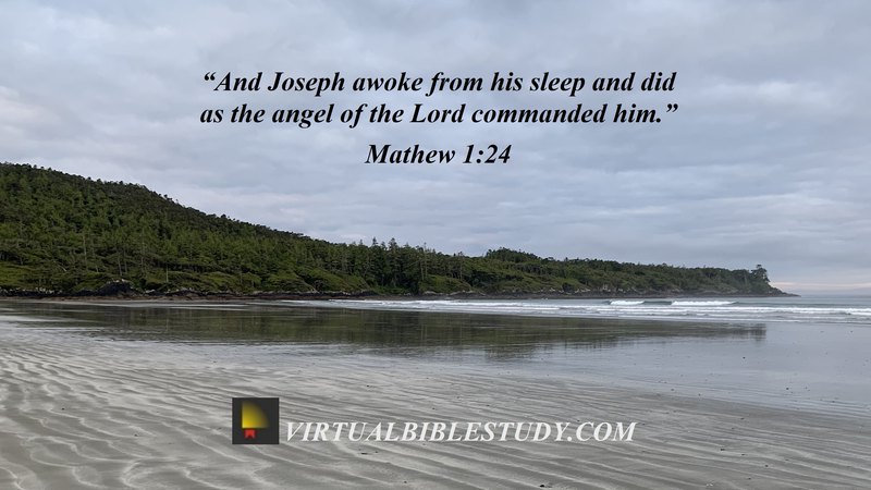 18 Now the birth of Jesus Christ was as follows: when His mother Mary had been betrothed to Joseph, before they came together she was found to be with child by the Holy Spirit. 19 And Joseph her husband, being a righteous man and not wanting to disgrace her, planned to send her away secretly. 20 But when he had considered this, behold, an angel of the Lord appeared to him in a dream, saying, “Joseph, son of David, do not be afraid to take Mary as your wife; for the Child who has been conceived in her is of the Holy Spirit. 21 She will bear a Son; and you shall call His name Jesus, for He will save His people from their sins.” 22 Now all this took place to fulfill what was spoken by the Lord through the prophet: 23 “ Behold, the virgin shall be withchild and shall bear a Son, and they shall call His nameImmanuel ,” which translated means, “ God with us .” 24 And Joseph awoke from his sleep and did as the angel of the Lord commanded him, and took Mary as his wife, 25 but kept her a virgin until she gave birth to a Son; and he called His name Jesus.