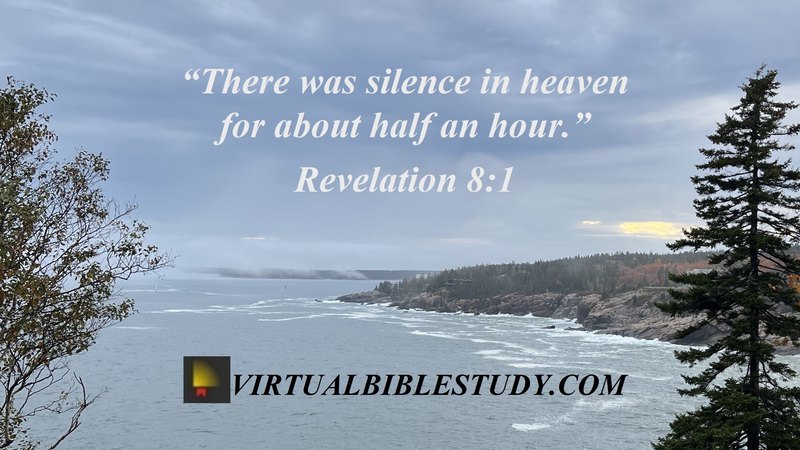 When the Lamb broke the seventh seal, there was silence in heaven for about half an hour. 2 And I saw the seven angels who stand before God, and seven trumpets were given to them.